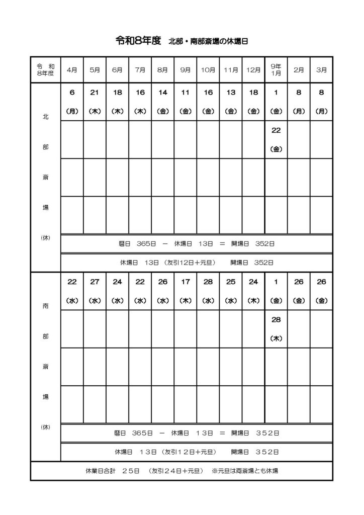 令和8年度休場日については、下記カレンダーをご確認ください。